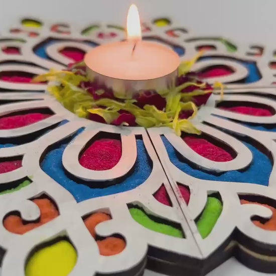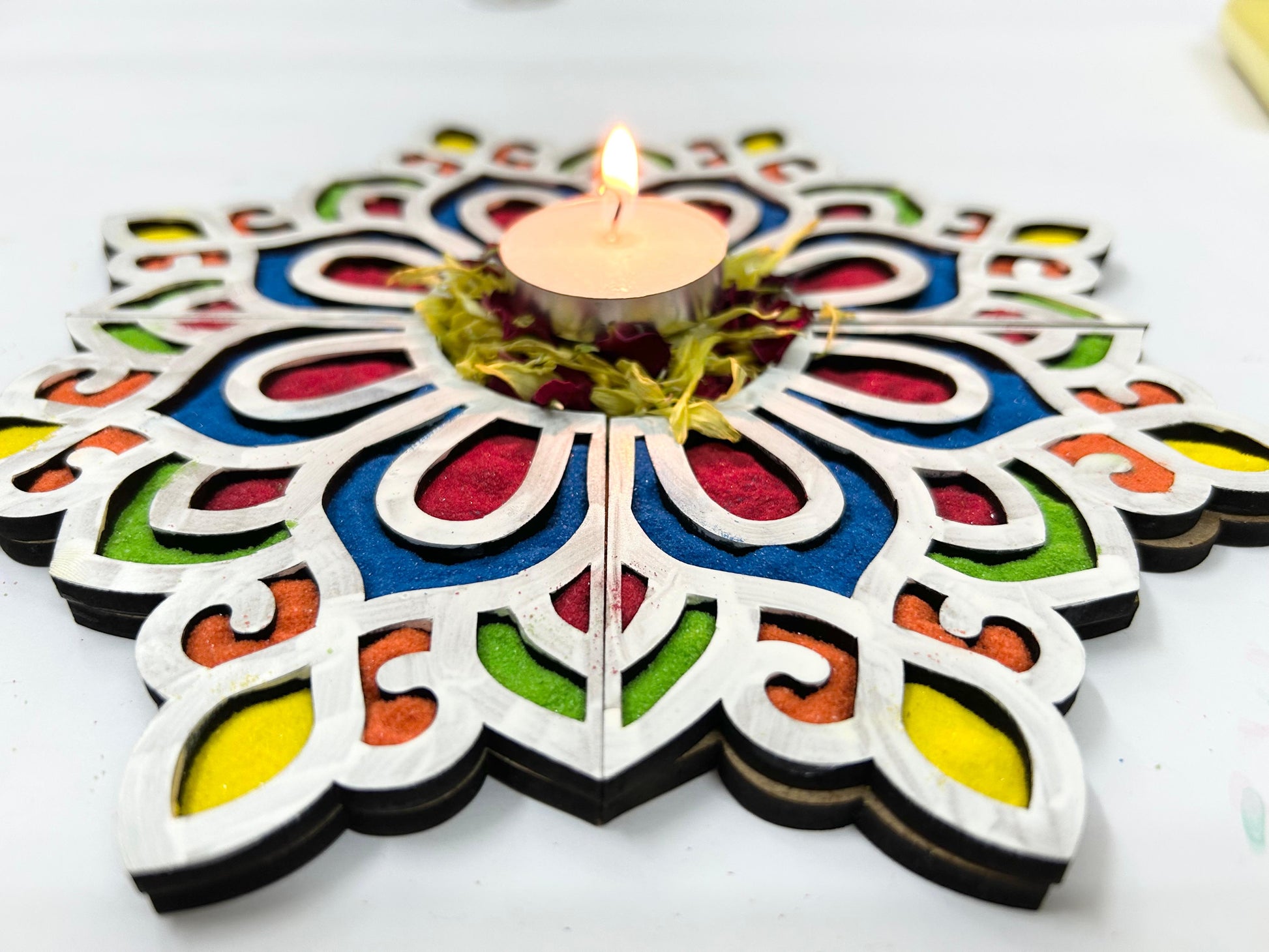 Bring your celebrations to life with our Colorful Festive Rangoli Kit! Packed with vibrant colors and easy-to-use tools, it makes creating stunning rangoli designs a joyful and fun activity for the whole family. Add a splash of tradition, creativity, and festive cheer to your home this season!